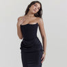 With satin fabric and a modern design, this dress turns any moment into pure glamour.